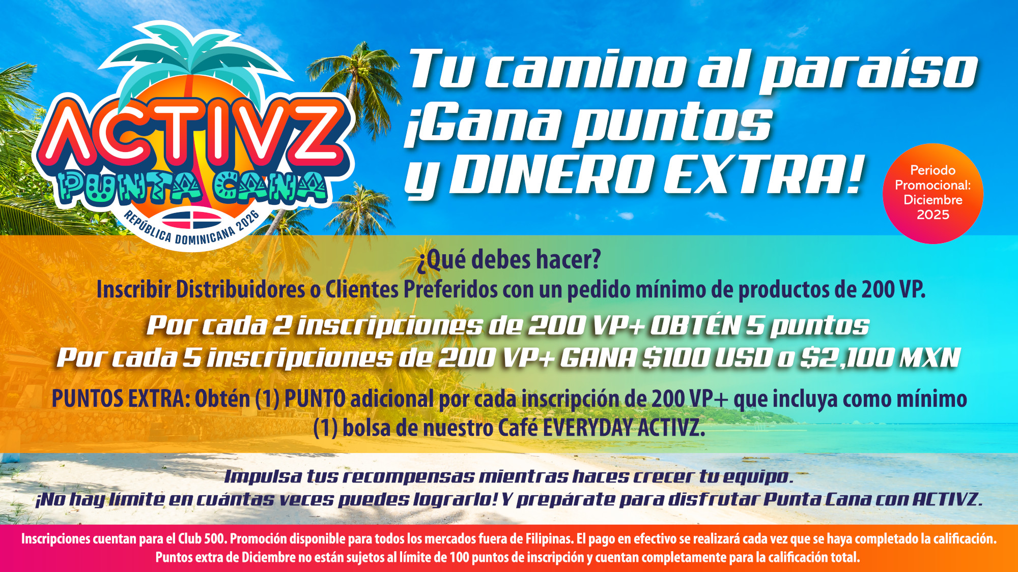 Inscripciones de Nuevos Distribuidores o Clientes Preferidos con un mínimo de 100 VP+.
